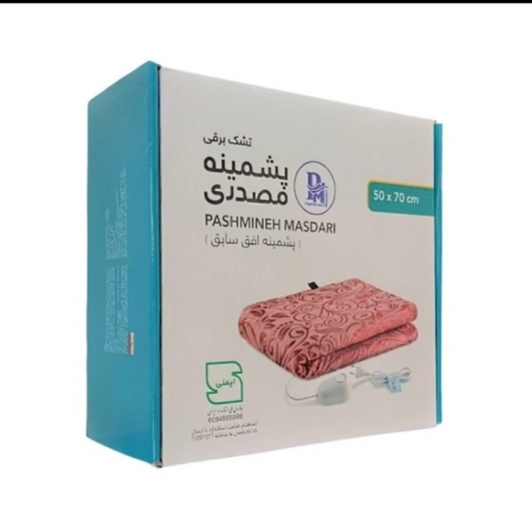 تشک برقی سایز 50 در 70 پشمینه مصدری، مجهز به فناوری گرمایش سریع، سنسور حرارتی اتوماتیک و فیوز ایمنی است. این تشک قابلیت ایجاد حداکثر دمای 60 درجه سانتیگراد را دارد.