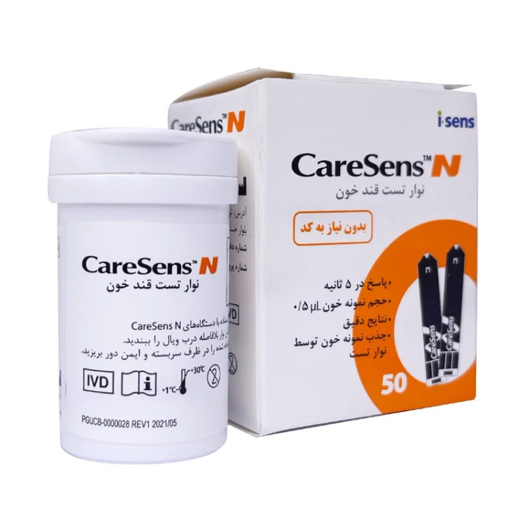 نوارهای تست قند خون CareSens N به دلیل استفاده از تکنولوژی CodeSens نیاز به وارد کردن کد و کالیبراسیون ندارند، این امر به دلیل چیپ موجود بر روی نوار است که اطلاعات موجود بر روی آن در زمان تولید در کارخانه بارگذاری شده و به محض وارد نمودن نوار درون دستگاه چیپ به صورت اتوماتیک توسط دستگاه خوانده می شود. در نوارهای CareSens N از آنزیم گلوکز اکسیداز ( GOD ) که استاندارد طلایی دستگاه های قند خون می باشد و همچنین از ماده واسط هگزا آمینو روتانیوم کلراید و الکترودهای نانو کربنی بهره گرفته شده است که استفاده از این مواد دقت بالای تست را تضمین می نماید. همچنین با استفاده از تکنولوژی CoreSignal که به صورت اختصاصی در دستگاه های i-sens وجود دارد، سیگنال های الکتریکی تولید شده در فرآیند اندازه گیری می شود که حاصل نتیجه ای دقیق و اختصاصی خواهد بود و دقت آن منطبق بر استاندارد ISO15197:2013 است که این استاندارد بالاترین استاندارد موجود برای سنجش دقت دستگاه های قند خون است.